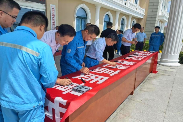 “一筆一劃簽下的不僅是自己的姓名,還有對質(zhì)量的承諾?!眻D為梁平海螺、全椒海螺、海川裝備廣大員工在“質(zhì)量月”橫幅上簽名,發(fā)出“人人關(guān)心質(zhì)量、人人重視質(zhì)量、人人追求質(zhì)量”的倡議。