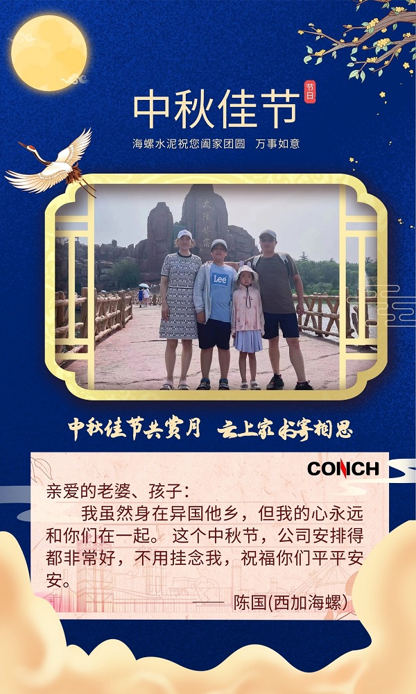 “皓魄當(dāng)空寶鏡升,云間仙籟寂無聲。”此時(shí)此刻的你,是如何度過中秋佳節(jié)的呢?在海螺水泥,有這么一群人,堅(jiān)守海外,正在用一紙家書,遙寄相思,云過中秋,快來一起感受下他們的濃濃信中情吧!