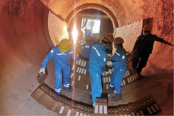 南加海螺印尼籍員工正在進行1號窯耐火磚堆砌
