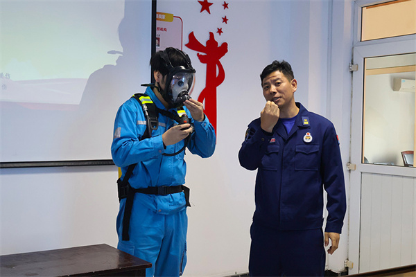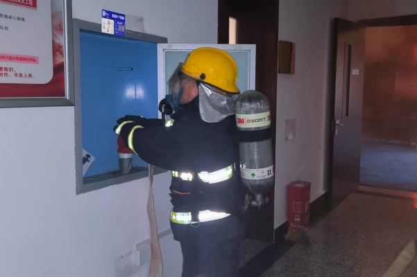 安徽蕪湖,海螺水泥部室員工認(rèn)真參與火災(zāi)事故應(yīng)急演練,鏡湖區(qū)消防救援大隊的消防員現(xiàn)場向大家講解過濾式自救呼吸器、緩降器、消火栓等應(yīng)急器材的使用方法。