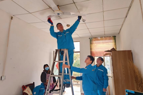 山東濟(jì)寧海螺志愿者前往泗水縣苗館鎮(zhèn)敬老院開展慰問活動,志愿者們進(jìn)行家電維修、電路檢查。