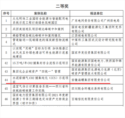 ●《水泥窯煙氣二氧化碳捕集純化與利用示范項(xiàng)目》榮獲安徽省十大低碳應(yīng)用場(chǎng)景