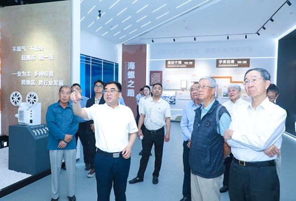 在海螺集團展廳,一件件展品、一幅幅圖片、一組組數(shù)據(jù),生動勾勒出海螺集團從小到大、由弱變強的奮進畫卷。代表團一行不時駐足詢問,深入了解海螺集團在水泥制造、新能源、新材料、環(huán)保、數(shù)字經(jīng)濟、現(xiàn)代服務(wù)貿(mào)易等領(lǐng)域的多元化布局以及取得的豐碩成果。