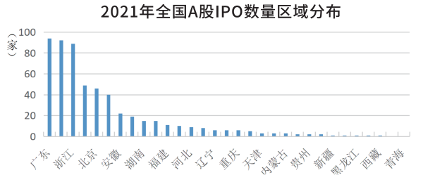 企業(yè)上市速度反映優(yōu)質(zhì)企業(yè)成長速度。2021年,A股IPO市場火熱,全年共計(jì)524家上市公司IPO“沖A”成功。從新增來看,安徽2021年共新增22家上市公司,其中4家由新三板精選層“平移”至北交所,再創(chuàng)歷史新高。年度增量居中部第1位、全國第7位。其中,新增科創(chuàng)板上市公司7家,居全國第8位;新增注冊(cè)制下創(chuàng)業(yè)板上市公司6家,居全國第8位。