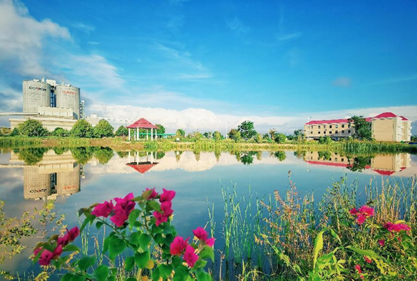 走進(jìn)馬德望海螺廠區(qū),綠水環(huán)繞,青山相倚,花草掩映成趣,人工湖埂和綠植共同組成的“CONCH”標(biāo)志在衛(wèi)星圖中也十分明顯,巧妙的設(shè)計(jì)使得自然和人文景觀相融極具特色,湖中成群的野鴨游過(guò),一幅人與自然和諧共生的美麗畫卷徐徐展開(kāi)。