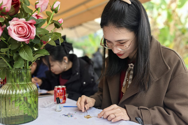 活動(dòng)伊始,非遺螺鈿手工環(huán)節(jié)率先拉開帷幕。工作人員為女職工們?cè)敿?xì)講解螺鈿工藝的歷史淵源、制作流程及技巧。從挑選色澤絢麗的螺鈿薄片,到設(shè)計(jì)獨(dú)特的圖案排版,再到小心翼翼地上膠粘貼,每一步都充滿挑戰(zhàn)與驚喜。女職工們個(gè)個(gè)全神貫注,充分發(fā)揮智慧與匠心。大家相互交流、互相借鑒,現(xiàn)場(chǎng)不時(shí)響起對(duì)創(chuàng)意的贊嘆聲,一件件凝聚著靈感與專注的螺鈿作品逐漸成型,充分展現(xiàn)了女職工們對(duì)非遺文化的熱愛與傳承。