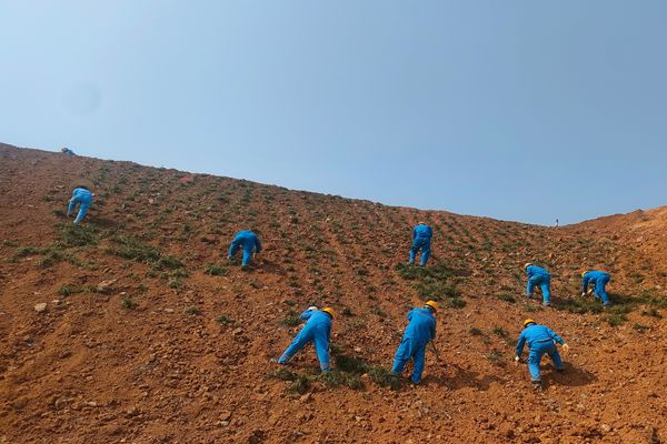 礦山種樹(shù)光有熱情還不夠,還要講究科學(xué)的種植方式。沒(méi)有植樹(shù)技術(shù)員怎么辦?不要緊!礦山穿爆班在工作中常常與巖石、土壤打交道,閑暇之時(shí)又經(jīng)常開(kāi)展復(fù)綠工作,早已是礦山苗木種植的“專家”。他們細(xì)心指導(dǎo)大家“樹(shù)坑還要多挖一寸深”“這個(gè)坑不夠?qū)?,再挖點(diǎn)”“填土不要壓太實(shí)了,既要保持樹(shù)苗穩(wěn)固,又要保障透氣性......”,大家認(rèn)真聽(tīng)著植樹(shù)技巧,分工合作,有條不紊,干勁十足。不一會(huì)兒,一棵又一棵樹(shù)苗開(kāi)始挺立起來(lái)。