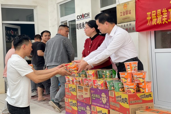 活動當(dāng)日,興業(yè)海螺和興業(yè)縣總工會的工作人員與志愿者們帶著滿滿的物資抵達(dá)骨料司機(jī)休息室。一箱箱泡面整齊擺放,為忙碌的骨料司機(jī)們提供了便捷的食物補(bǔ)給。司機(jī)們在休息間隙收到這份貼心禮物,紛紛露出欣慰笑容。一位骨料司機(jī)感慨道:“跑車經(jīng)常錯過飯點(diǎn),這泡面可真是太及時了,工會想得太周到了?!?/span>