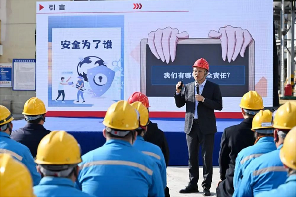為進一步深化“萬企筑安話安全”活動成果,全椒海螺負責人帶頭上臺講安全,介紹企業(yè)內部隱患報告和獎勵制度的意義,并發(fā)布“全員安全責任倡議”,倡導落實企業(yè)全員安全生產責任、守護企業(yè)安全發(fā)展。