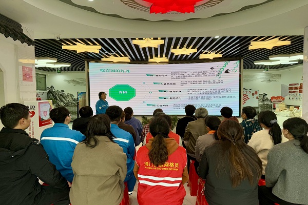 青年志愿者們早早抵達活動現(xiàn)場,精心布置場地、準備物料,確保活動流程規(guī)范有序。啟動儀式后,志愿者通過多媒體教學與實物展示相結(jié)合的方式,向長者們系統(tǒng)講解傳統(tǒng)艾草制品的文化內(nèi)涵與養(yǎng)生價值,重點介紹艾草錘的經(jīng)絡疏通功效及青團制作技藝的非遺傳承意義,將健康理念與傳統(tǒng)智慧有機融合。