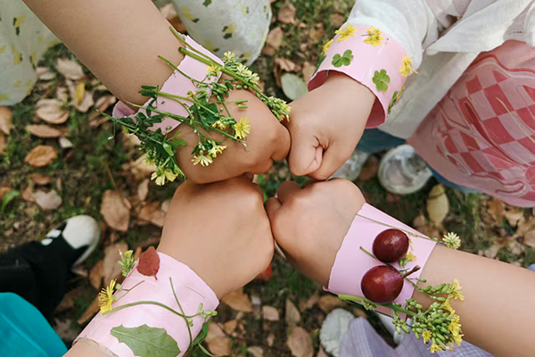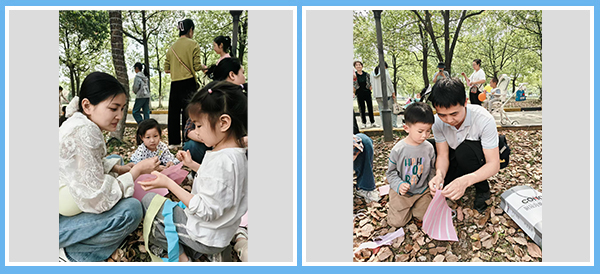 本次活動(dòng)將“親子共讀”與“戶外手工創(chuàng)作”相結(jié)合,在員工閱覽室外,孩子們圍成一圈,以書(shū)本為靈感、以自然為素材,共同創(chuàng)作充滿詩(shī)意的春日手工藝品。