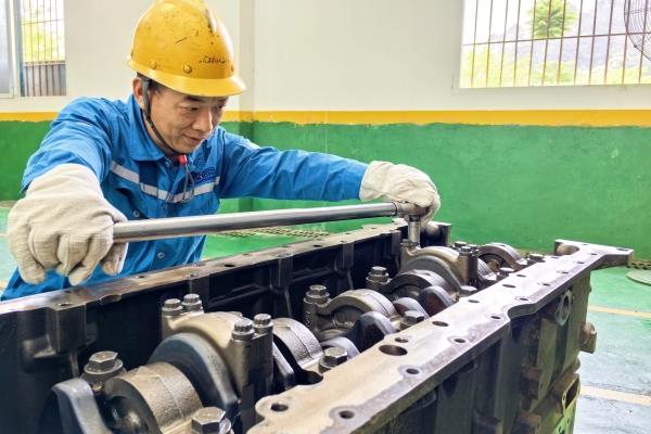 礦山分廠工程機(jī)械維修工馮勝元全神貫注地操控著扭力扳手,對(duì)TR50礦車(chē)發(fā)動(dòng)機(jī)連桿螺栓實(shí)施精準(zhǔn)施力。這項(xiàng)看似簡(jiǎn)單的預(yù)緊作業(yè),實(shí)則是保障動(dòng)力核心穩(wěn)定運(yùn)轉(zhuǎn)的關(guān)鍵工序,凝結(jié)著延長(zhǎng)設(shè)備服役周期的匠心。(胡萬(wàn)禹/攝)