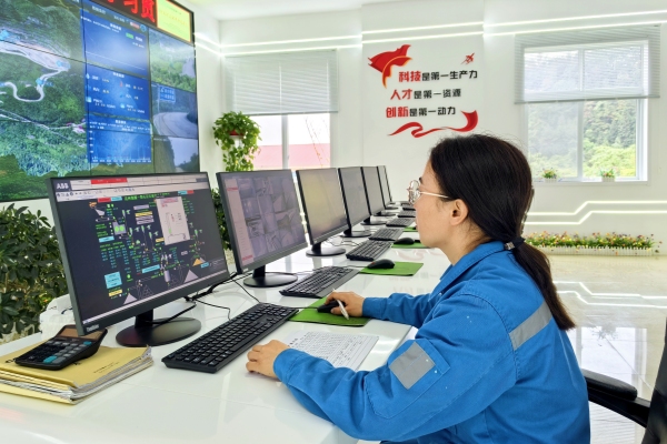 礦山分廠局控操作員李良瓊的視線在監(jiān)控屏幕間快速流轉(zhuǎn)。她左手同步更新生產(chǎn)數(shù)據(jù)臺(tái)賬,右手實(shí)時(shí)調(diào)節(jié)設(shè)備參數(shù),數(shù)字化看板上的綠色運(yùn)行曲線,見(jiàn)證著這位“工藝線守護(hù)者”護(hù)航設(shè)備高效運(yùn)轉(zhuǎn)的智慧。(胡萬(wàn)禹/攝)