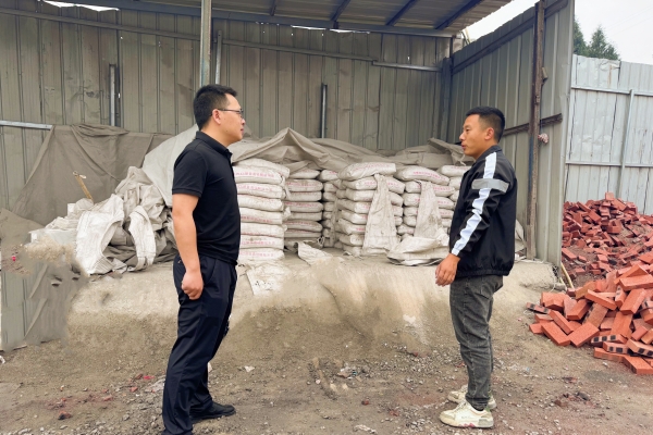 銷售處市場(chǎng)部業(yè)務(wù)員張力林正在拜訪水泥客戶,摸排和了解當(dāng)前市場(chǎng)水泥需求,兩人身后堆滿的海螺牌水泥,交錯(cuò)的影子投射在水泥袋上,勾勒出合作無(wú)間的默契。(李云/攝)