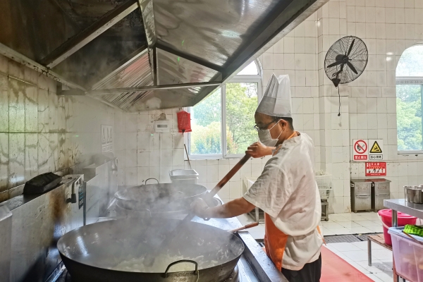 辦公室食堂廚師李晉濤正在制作全體職工午餐,他常說(shuō):“后勤保障工作很重要,現(xiàn)場(chǎng)職工太辛苦了,在‘能量補(bǔ)給’上面一點(diǎn)兒馬虎不得?!保盍?攝)