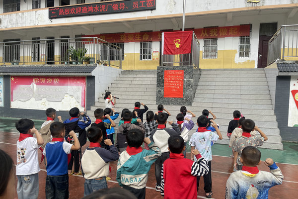 紅旗漫卷,誓言錚錚。慰問(wèn)團(tuán)隊(duì)與全校師生共同參與了莊嚴(yán)的升旗儀式。當(dāng)雄壯的國(guó)歌奏響,五星紅旗在全體肅立的目光中冉冉升向晴空,熾熱的愛(ài)國(guó)情懷在每個(gè)人心中激蕩。隨后,一個(gè)意義非凡的環(huán)節(jié)到來(lái):一批新隊(duì)員在隊(duì)旗下光榮加入了中國(guó)少年先鋒隊(duì)。凌云縣總工會(huì)江榮會(huì)副主席與凌云通鴻工會(huì)主席鄭有為等代表緩步上前,俯身為這些新隊(duì)員仔細(xì)整理衣領(lǐng),鄭重地系上鮮艷的紅領(lǐng)巾。這抹革命先烈熱血染就的鮮紅,此刻佩戴在胸前,更象征著責(zé)任與榮光的無(wú)聲傳遞。