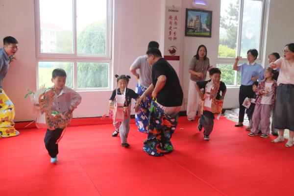 六一兒童節(jié)專屬的趣味游戲區(qū)同樣熱鬧非凡?!按笕舜筇?兒童劃龍船”游戲前,孩子們排著整齊隊伍,大聲呼叫,為爸爸媽媽加油打氣,“爸爸,快點跳,有人要追上你了……”“媽媽,加油,你是最厲害的……”, 爸爸媽媽們聽到孩子們的吶喊,牟足了勁往前跳,孩子們接棒成功后,飛快的跑了出去,贏得了周圍的小伙伴們陣陣歡呼。家長和孩子們默契配合,完成挑戰(zhàn),在游戲中增進了親子感情。