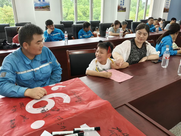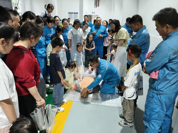 沉浸式體驗(yàn)爸爸的工作日常,走進(jìn)爸爸的“第二個(gè)家”。家屬們?cè)诠S講解員的帶領(lǐng)下,先后參觀了企業(yè)工廠廠史館、中控操作室以及安全實(shí)訓(xùn)基地。在廠史館,10歲的果果眼里寫(xiě)滿(mǎn)新奇,“這是什么,那什么”問(wèn)個(gè)不停,當(dāng)她發(fā)現(xiàn)工廠成長(zhǎng)照片墻上爸爸的身影時(shí),興奮著指給旁邊的媽媽看;在心肺復(fù)蘇假人模擬操作環(huán)節(jié),8歲的小小男子漢大樹(shù)在爸爸的手把手教學(xué)下,一邊數(shù)著“1、2、3……”一邊認(rèn)真地給假人模型做按壓式心肺復(fù)蘇。這種沉浸式體驗(yàn)不僅讓孩子們觸摸到父親工作的溫度,還有對(duì)“爸爸為什么晚歸”的全新理解,更在稚嫩的心靈播下職業(yè)啟蒙的種子。