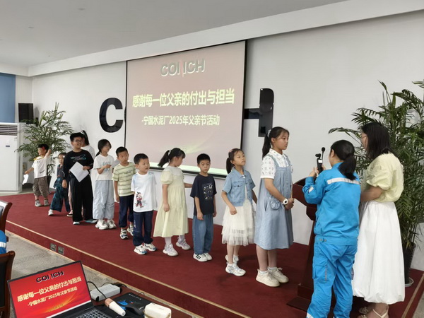 2025年6月15日,寧國(guó)水泥廠四樓大會(huì)議室內(nèi)氣氛溫馨又熱烈,一個(gè)小朋友在講臺(tái)上,向父親深情感恩告白,稚嫩的童音,一聲聲叮囑:“爸爸,今天是父親節(jié),您辛苦了,媽媽和我希望您注意身體,一定要注意安全,您是我們家的依靠,我愛(ài)您爸爸!”在父親節(jié)來(lái)臨之際,寧國(guó)水泥廠特別策劃“父親節(jié)家屬開(kāi)放日活動(dòng)”,向每一位“職場(chǎng)爸爸”致敬,感恩每一位父親的付出與擔(dān)當(dāng)!活動(dòng)當(dāng)天,工廠邀請(qǐng)了20多名員工家屬走進(jìn)企業(yè),體驗(yàn)爸爸的日常工作,參與親子互動(dòng)游戲,領(lǐng)取暖心節(jié)日禮,共同見(jiàn)證“父親”這一角色在職場(chǎng)與家庭中的雙重光芒。