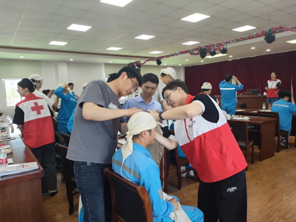 象山海螺  曹祥明:這次培訓的創(chuàng)傷救護實操讓我收獲頗豐。若發(fā)現同事手臂被劃傷大量出血,我如今能迅速反應:立即用敷料或干凈的布料覆蓋在傷口上,用手直接持續(xù)用力壓迫傷口止血(避免盲目拔出異物),抬高傷肢減少血流;持續(xù)加壓包扎后,如果敷料被血液浸透,不要更換,再取敷料覆蓋在原有的敷料上繼續(xù)壓迫止血。日常預防同樣關鍵:規(guī)范操作設備保持作業(yè)環(huán)境整潔避免尖銳物暴露、正確佩戴勞保用品,這些細節(jié)能有效減少創(chuàng)傷風險??此坪唵蔚目噹Юp繞,實則是守護生命的技能——當講師演示“8字包扎法”固定關節(jié)時,我深刻體會到"人人會急救"對企業(yè)安全的意義。我會將這份技能轉化為行動,讓意外來臨時不再手足無措。